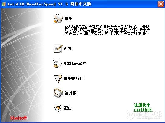 AutoCAD速度訓(xùn)練教程的目標(biāo)是通過(guò)教程指導(dǎo)之下的訓(xùn)練,使用戶在兩至三周內(nèi)提高繪圖速度3-5倍。聽(tīng)似天方夜譚,實(shí)則科學(xué)有效。如何實(shí)現(xiàn)?請(qǐng)看軟件詳細(xì)說(shuō)明…