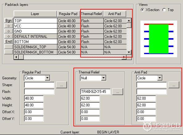 在建焊盤時(shí)注意下圖紅色方框中的設(shè)置都是針對(duì)負(fù)片而言的