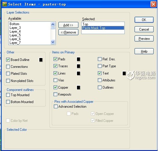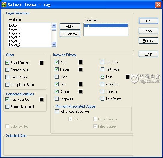 ,Output File也可以自己定義名字,F(xiàn)abrication Layer設(shè)成相應層,如Top。如下圖所示: