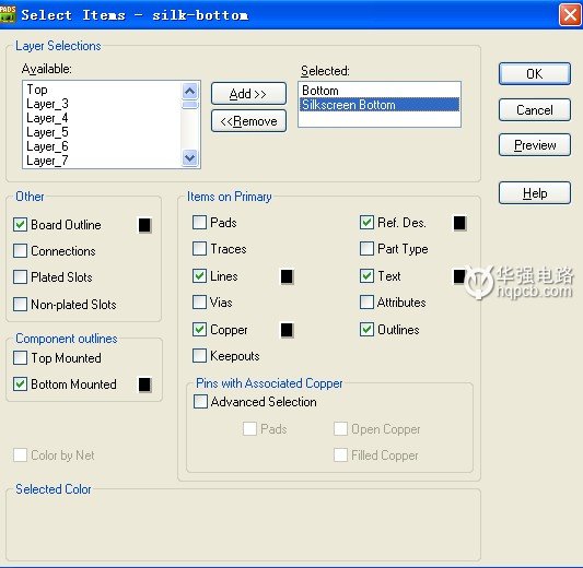 9,Customize Document下Layers需要設(shè)置一下,SilkscreenBottom層如下圖所示:
