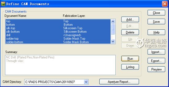 15,所有上面都設(shè)置好后,回到Define CAM Documents下,將top,bottom,silk-top,silk-bottom,drill,