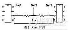 通常把連續(xù)的幾段由無源元件(電阻,電容或電感)連接的NET合稱為Xnet,如圖3所示。
