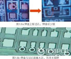 5、 焊盤(pán)上有過(guò)孔或焊盤(pán)與過(guò)孔距離太近。
