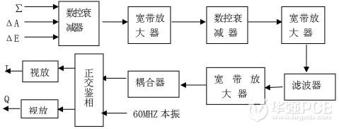 視頻接收組合是由I/Q正交鑒相器和視頻放大器組成。其中應(yīng)用數(shù)控衰減器實時調(diào)整各路本振信號的相位,以達到補償接收機系統(tǒng)相位一致性的目的。最后輸出反射和應(yīng)答的12路I/Q信號以及反射和應(yīng)答的檢波信號。