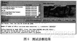 第一階段,本文只對(duì)電路板上的179個(gè)電阻進(jìn)行了建模,測(cè)試得到的與邊界掃描器件引腳相關(guān)的故障覆蓋率為56.78%,沒(méi)有檢測(cè)到故障。第二階段,本文在第一階段的基礎(chǔ)上又對(duì)39個(gè)與邊界掃描器件相連的非邊界掃描器件進(jìn)行建模,測(cè)試得到的故障覆蓋率為67.03 %,有了明顯提高,且故障檢出,結(jié)果顯示如圖6所示。