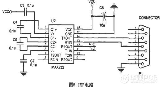 ISP(In—System Programming)在系統(tǒng)可編程,指的是電路板上的空白器件可以編程寫入最終用戶代碼,而不方需式要擦從除電或路再板編卜程取。下傳器件統(tǒng),的已80經(jīng)51編單程片的機器調(diào)件試也可程以序用的I刪SP要使用編程器或者仿真器,比較繁瑣,而STC12C5410AD支持在ISP,只要加入圖5中的電路,就可以通過串口利用STC單片機PC端ISP下載摔制軟件將要調(diào)試的程序寫到電路板上的單片機中。下圖中的網(wǎng)絡標號RxD和TxD分別連接到STC12C5410AD單片機中的P3.0口和P3.1口。