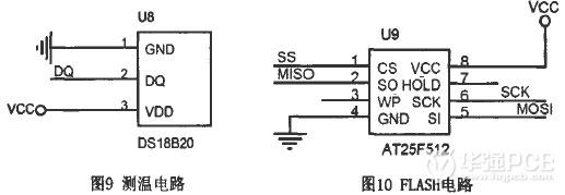 測溫電路示于圖9,采用的是Dallas公司的單總線數(shù)字式溫度傳感器DS18B20,因此小需要加入模數(shù)轉換電路,直接將它的DQ腳接到單片機的一個IO口就可以了。