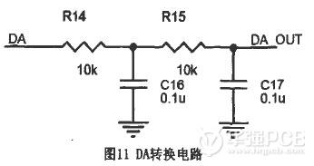 DA轉換電路示于圖11,利用單片機自帶的PWM功能來實現(xiàn)DA轉換。