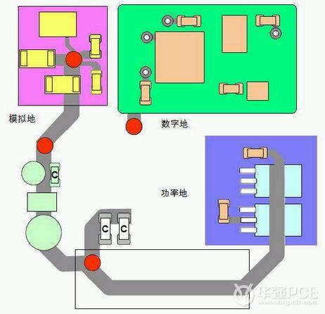 在低頻率、小功率和相同電源層之間,單點接地是最為適宜的,通常應(yīng)用于模擬電路之中;一般采用星型方式進(jìn)行連接降低了可能存在的串聯(lián)阻抗的影響。高頻率的數(shù)字電路就需要并聯(lián)接地了,一般通過地孔的方式可較為簡單的處理;一般所有的模塊都會綜合使用兩種接地方式,采用混合接地的方式完成電路地線與地平面的連接。