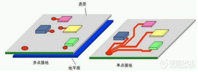 2、多點接地:所有電路的地線就近接地,地線很短適合高頻接地。
