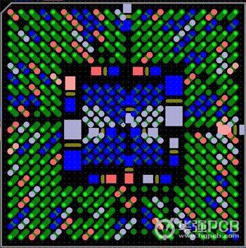 本文使用的微型BGA焊盤內(nèi)過孔扇出例子采用的是0.4mm球或引線間距,PCB是18層,包括8個(gè)信號布線層。BGA布線通常要求更多的層數(shù)。但在這個(gè)例子中,層數(shù)不是問題,因?yàn)橹挥昧松倭康腂GA球。關(guān)鍵問題仍然是微型BGA的0.4mm窄間距,并且頂層除了扇出外不允許布線。目標(biāo)是既做到扇出微型BGA,又不負(fù)面影響PCB的制造。