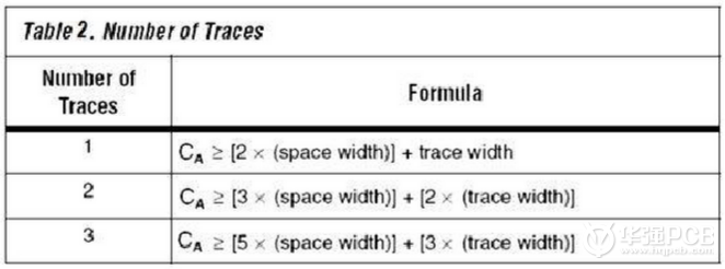 (注:Number of Traces: 走線數(shù)量;Formula: 公式;Space width: 空間寬度;Trace width: 走線寬度)
