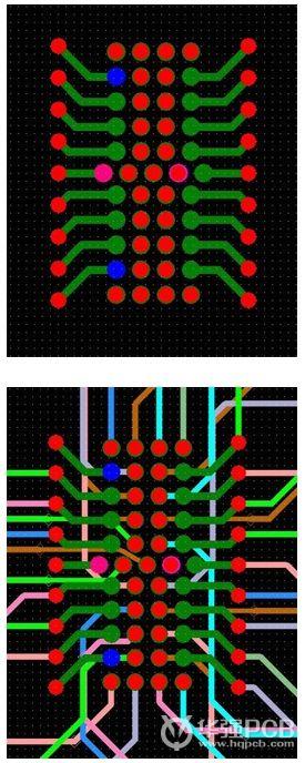 圖4a和4b:PCB板設(shè)計(jì)_如何布線不同的BGA圈,從最外層開始,直到中心