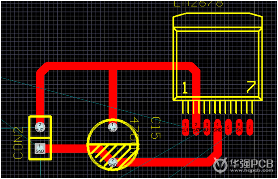 如果大家嫌這個(gè)不好看,按下圖處理也是正確的,你們也可以發(fā)現(xiàn)在一些PCB設(shè)計(jì)中也會用到下面的處理方式。