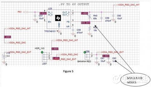 圖4:原理圖測試平臺(tái)和各個(gè)節(jié)點(diǎn)的仿真值