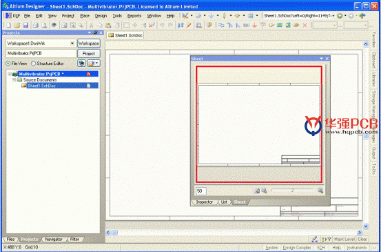 1 . 選擇File>>New>>Schematic,或者在Files面板內(nèi)里的New選項中單擊Schematic Sheet。在設(shè)計窗口中將出現(xiàn)了一個命名為Sheet1 . SchDoc的空白電路原理圖并且該電路原理圖將自動被添加到工程當中。該電路原理圖會在工程 的Source Documents目錄下。