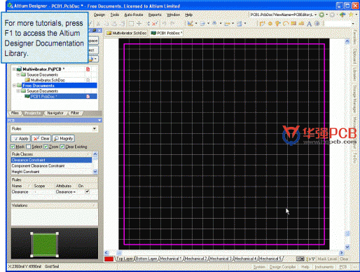 1 、激活PCB文件,選擇菜單中的Design>>Rules。