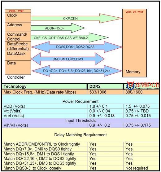 表1顯示了DDR2和DDR3所具有的共有技術(shù)要求和專有的技術(shù)要求。