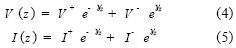 式中:V+ ,V- ,I+ ,I-分別是電壓波和電流波的振幅常數(shù),而+、-分別表示入射波(+Z)及反射波(-Z)的傳輸方向。傳播常數(shù)C定義為