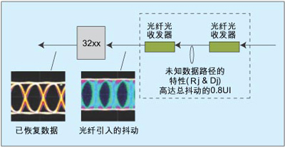 盡管基于銅線互聯(lián)系統(tǒng)信號(hào)的劣化主要是由于字符間干擾(確定性的抖動(dòng))組成,但是串?dāng)_和隨機(jī)抖動(dòng)這兩類信號(hào)劣化可能需要進(jìn)一步的解決措施。 圖3:利用基于CDR的EQ技術(shù)在從未知來(lái)源的光纖傳輸后恢復(fù)信號(hào)。