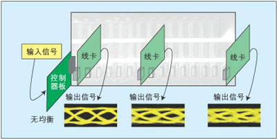 由于具有小的形狀因子、低成本、低功率特點(diǎn),有源均衡器IC可以最佳地放置在信號(hào)通路上。例如,可以用一連串這樣的IC放置在插入到背板上的端口卡上的連接器附近,不僅改善整體信號(hào),還中斷了信號(hào)路徑以擴(kuò)大最大的覆蓋距離。