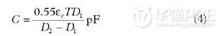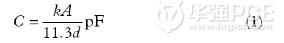 C表示電容值,A表示以cm2為單位的極板面積,k表示PCB材料的相對介電常數(shù),d表示以cm為單位的極板間距離。