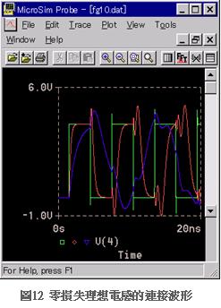 不過噪訊濾波器要求適當的損失,尤其是連接防止用電感器的損失如果太低時幾乎沒有任何效果。圖12是兩端的反射100%布線,使用零損失理想電感器時的模擬分析連接波形(因為模擬分析可以創(chuàng)造零損失時各種狀態(tài))。