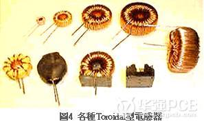 電感器一旦使直流重迭時,由于直流成份的影響造成電感值大幅降低。此外電源用電感會有很大的直流電流動,因此必需選擇適合的電感器。一般電源基板入口處設置的電感器,大多使用圖4的Toroidal型電感器。