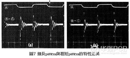 振動的原因主要是連結(Linking)所造成,以圖7(a)為例,由于連結周期與布線長度呈比例,因此圖7(a)的連結周期非常長,而且振幅也比較大。圖7(a)的Linking最初呈站立狀,?的波形凸出延伸(亦即圖7(a)的上方箭頭處與下方③的部位),實際上①部位的波形也呈相同形狀。