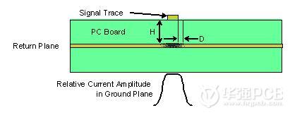 典型的距離“H”取決于承載流出訊號的路徑和回流平面在印刷電路板上實際所處的位置︰
