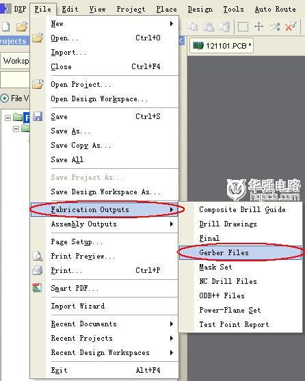2:下面開始轉(zhuǎn)換GERBER文件。在File菜單>Fabrication Outputs>Gerber Files