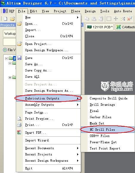 在File菜單>Fabrication Outputs>Nc Drill Files