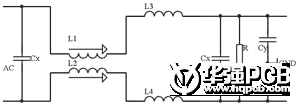 圖4 開關(guān)電源交流側(cè)EMI濾波器電路