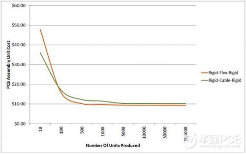 圖1:軟硬結(jié)合設(shè)計和電纜連接的剛性PCB組裝成本比較