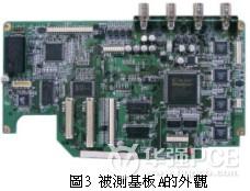 圖3是被測基板A的外觀,該基板為影像處理系統(tǒng)用電路主機板,動作頻率為27MHz與54MHz,電路基板內(nèi)建CPU、Sub CPU、FRASH,以及SDRAM×5、影像數(shù)據(jù)/數(shù)字轉(zhuǎn)換處理單元、影像輸出入單元,此外被測基板符合「VCCI規(guī)范等級B」的要求,測試上使用相同的電源基板(Board)與變壓器(Adapter)。