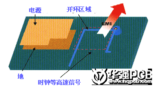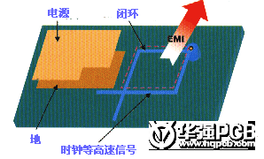 時鐘信號等高速信號網(wǎng)絡(luò),在多層的PCB走線的時候產(chǎn)生了閉環(huán)的結(jié)果,這樣的閉環(huán)結(jié)果將產(chǎn)生環(huán)形天線,增加EMI的輻射強(qiáng)度。