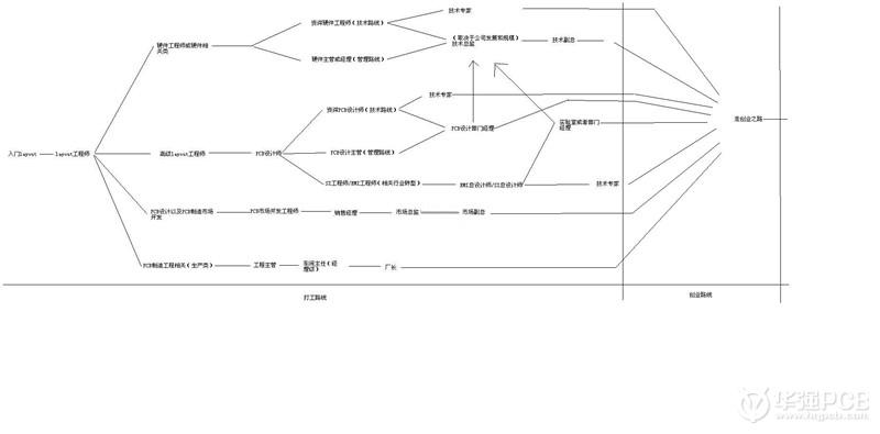 一,個人總結(jié)的一副PCB行業(yè)個人的發(fā)展規(guī)劃,此圖略微粗糙,但我覺得仍可為我輩之參考,參考路線都可以作為發(fā)展規(guī)劃,但我覺得怎么選,怎么做,主要有兩反面因素決定:一是興趣愛好,這個可能剛開始也不知道,需要工作中不斷體會方能發(fā)現(xiàn),二是實際的生活壓力,家庭的責任有時候會阻礙這方面的選擇,我不能做出這方面的總結(jié),自己還沒有這方面的本事替誰做決定,如果能的話,我也不會如此的彷徨了,所以又想到了但丁,走自己的路,讓別人說去吧。