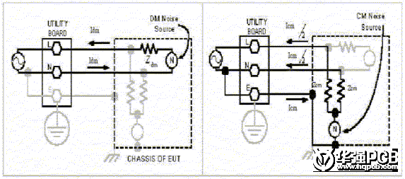 CM噪聲源有接地,而且L和N線路具有相同的阻抗Z。因此,它驅動相同大小的電路通過L和N線路。不過,這是假設兩者的阻抗大小相等??梢郧宄赜^察出,假使雙方的阻抗不均衡(unbalanced),「不對稱的」共模電流將分布在L和N線路上。這似乎是「用詞不當」或與原定義不符,因為CM本來又稱作「不對稱模式」。為了避免混淆,此時的模式應該稱作「非對稱(nonsymmetric)模式」,好和「不對稱模式」做區(qū)分。在大多數(shù)的電源供應電路中,在這個模式下所發(fā)出的EMI是最多的。