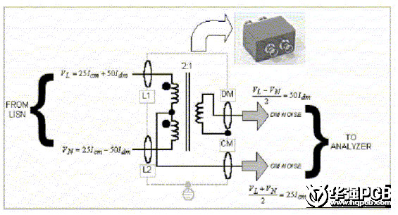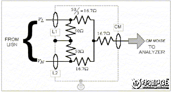 使用LISN后,就不需要分別測量CM和DM噪聲值,它們是利用上述的代數(shù)公式求得的。但有時還是需要各別測量CM和DM噪聲值,譬如:為了排除故障或診斷錯誤。幸好有一些聰明的方法可以達到各別測量的目的。我們舉兩個例子: