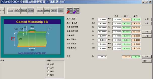 對于有阻抗控制要求的板,目前,PCB工廠比較常見的做法就是在PCB的生產(chǎn)拼版板邊適當(dāng)位置設(shè)計(jì)一些阻抗試樣,這些阻抗試樣具有與PCB相同的分層和阻抗線構(gòu)造。在設(shè)計(jì)阻抗試樣前會預(yù)先采用一些阻抗計(jì)算軟件對阻抗進(jìn)行模擬計(jì)算,以便對阻抗進(jìn)行預(yù)測。其中英國POLAR公司開發(fā)的CITS測試系統(tǒng)及計(jì)算軟件自1991年起已經(jīng)為許多PCB制造商所使用,而且操作簡單、具有強(qiáng)大的功能計(jì)算能力。但不管該系統(tǒng)功能有多強(qiáng)大,其計(jì)算能力及計(jì)算阻抗的場求解工具都依賴于使用“理想的”材質(zhì),模擬計(jì)算的結(jié)果與實(shí)際測量的阻抗結(jié)果之間總會存在一定的偏差。因此,對于客戶阻抗控制精度要求±5%的情況下,采用計(jì)算精度比較高的軟件進(jìn)行較為準(zhǔn)確的模擬預(yù)測就顯得尤為重要了。為此,我們采用英國POLAR公司開發(fā)的最新計(jì)算軟件Polar SI8000K 控制阻抗快速解算器進(jìn)行模擬預(yù)測,由于客戶要求:為了滿足50±5%Ω的阻抗允許PCB廠可對疊層結(jié)構(gòu)做適當(dāng)調(diào)整,而阻抗線寬不可調(diào)整,為此,模擬結(jié)果如下:2.2 PCB的生產(chǎn)過程控制