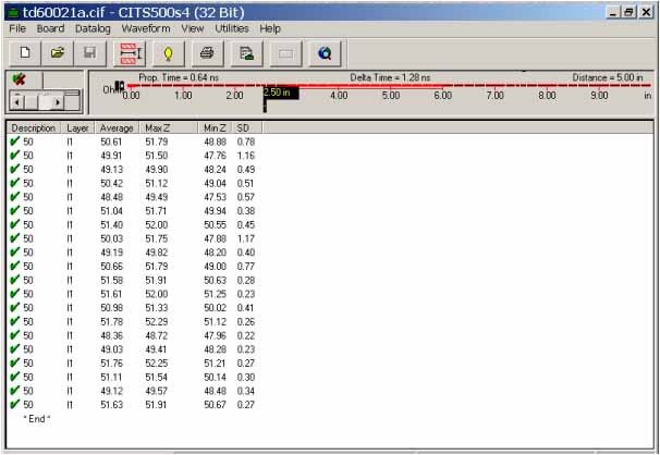 以下是采用TDR測試系統(tǒng)測試該板的阻抗測試結(jié)果,從結(jié)果可看出該板所測試的阻抗都在47.5∽52.5Ω之間,即完全滿足客戶50±5%Ω(50±2.5Ω)的阻抗要求. 因此,可看出對于客戶±8%甚至±5%的阻抗控制精度要求只要在生產(chǎn)前采用計(jì)算精度比較高的軟件進(jìn)行較為準(zhǔn)確的模擬預(yù)測,結(jié)合模擬預(yù)測的結(jié)果對相應(yīng)的一些參數(shù)做適當(dāng)調(diào)整,在生產(chǎn)過程中對重點(diǎn)工序加以特別的控制,同時,測量時確保測量的正確性,還是可以達(dá)到的。