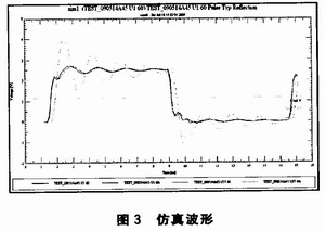 提取SD_DQlO(連接Cyclone II的59引腳和HY57V561620的45引腳),SD_DQll(連接Cyclone II的58引腳和HY57V561620的47引腳),SD_DQ-l2(連接CycloneII的57引腳和HY57V561620的48引腳)這三個(gè)網(wǎng)絡(luò)來做它們之間的串?dāng)_仿真。其中,SD_DQll作為被攻擊網(wǎng)絡(luò),SD_DQlO和SD_D-Ql2作為攻擊網(wǎng)絡(luò)。它們的拓?fù)浣Y(jié)構(gòu)和仿真波形如圖6、圖 7所示(傳輸線的并行耦合長度L=1000 mil,間距P=5 mil)。